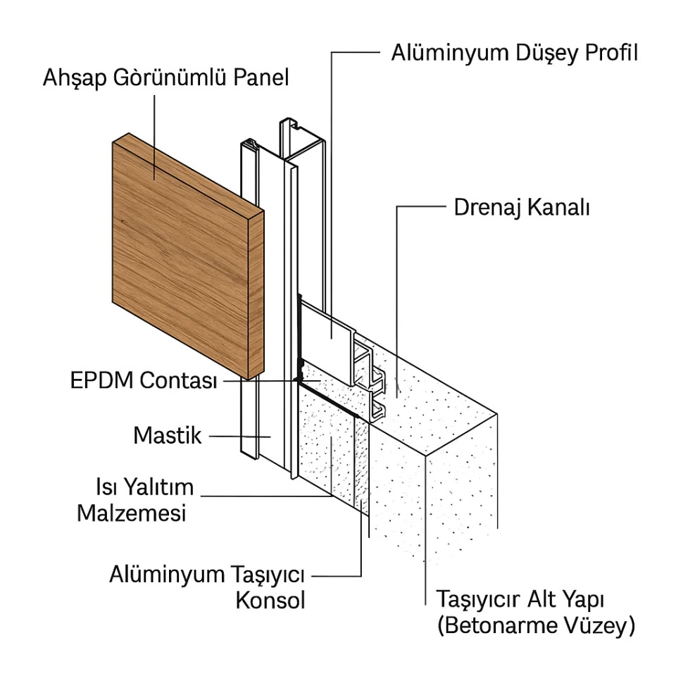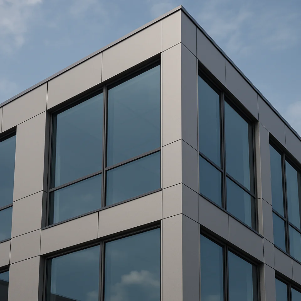 Лицевые материалы могут включать алюминиевые композитные панели, стекло, натуральный камень, керамику, металлические панели и материалы с имитацией дерева.
